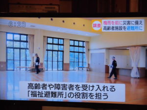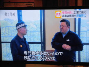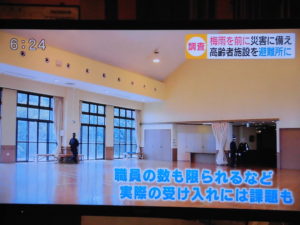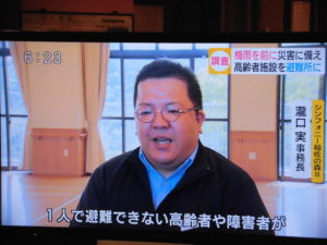 我らが、シンフォニー稲佐の森Ⅱ 瀧口 事務長が、迫るカメラを前にお応えしました。「お一人で避難できない高齢者や障害者が通常の避難場所では苦労する部分、不便に感じる部分が多い。専門職が多数いるので、お役に立てるのでは」・・・と。👏