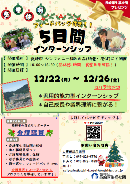 5日間あるので、稲佐の森の各事業所(老健・特養)の違いについても詳しく学べます!