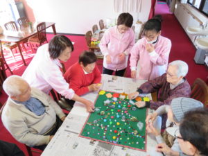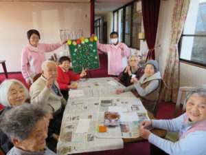 12/7(土)午後から、健康いきいきにて、クリスマスツリータペストリー作りを行いました(^_-)-☆