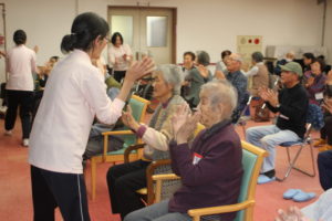 職員も一緒に皆さんと元気いっぱい運動を楽しみました