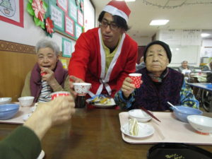 くじゃくの家では 昼食にクリスマスケーキを皆さんに食べて頂きました😄