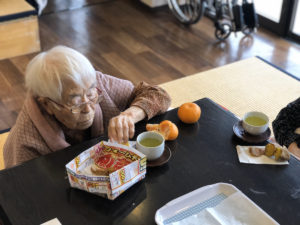 おやつにはみかん🍊と実際に施設で焼いた焼き芋🍠と