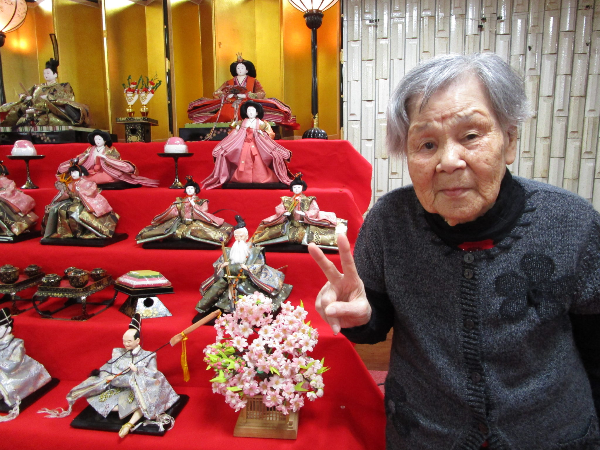 食後にひな人形と一緒に写真を撮られ 大満足の喫茶でした😄
