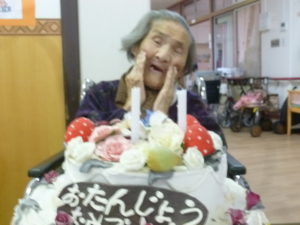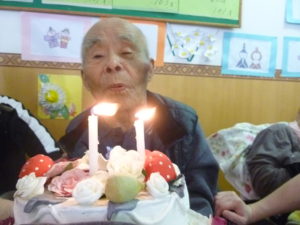 誕生ケーキのろうそく🕯を皆さんに消して頂いています