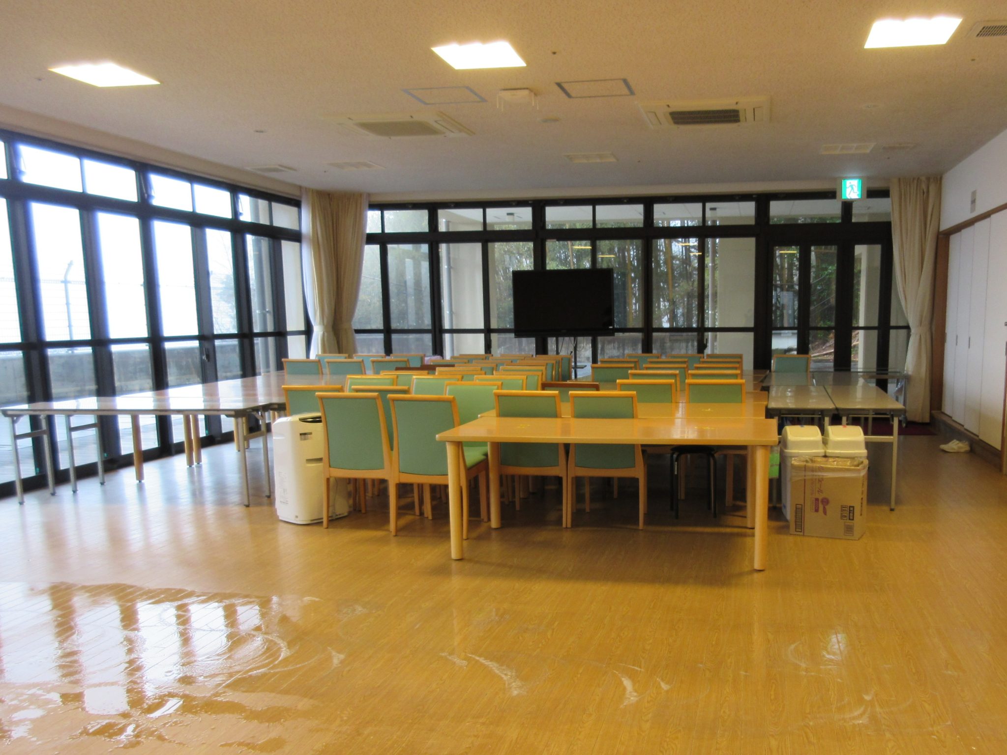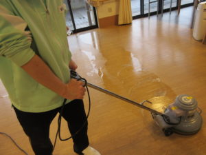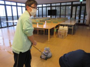 【彦山の森】ポリッシャーで食堂清掃(日中活動)