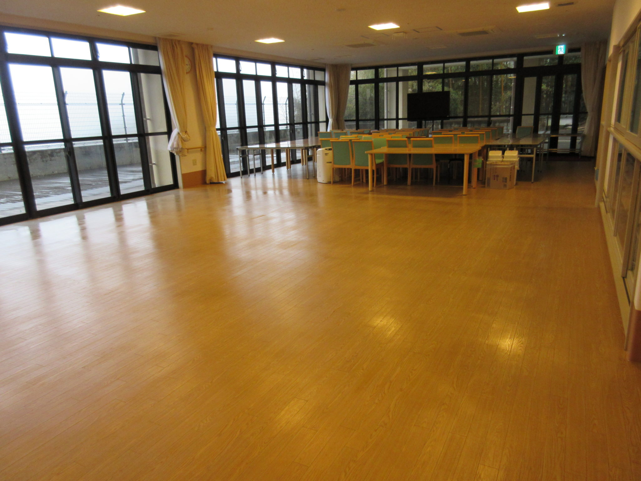 ワックス掛けも無事終わり、おかげさまで食堂の床はピカピカ✨綺麗になりました。