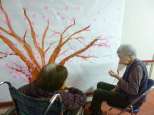 お参りの後には 廊下に準備していた桜の木の絵に 花びら🌸を貼られていました😄