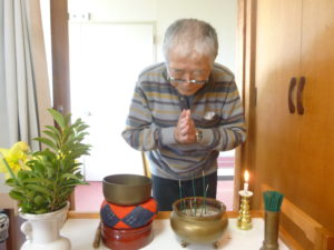 お寺参りは行わず、くじゃくの家の仏壇参りを行っています