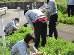 くじゃくの家では毎年の恒例行事 “よもぎちぎり”を皆さんと一緒に行いました
