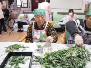 皆さんに選別して頂いた“よもぎ”はおやつや餅つきの時に使って楽しんで頂きますね