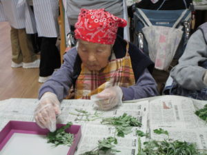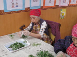 皆さんに選別して頂いた“よもぎ”はおやつや餅つきの時に使って楽しんで頂きますね