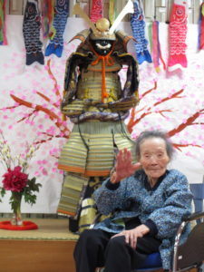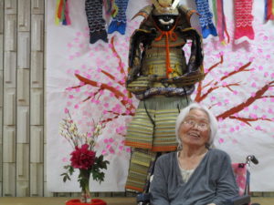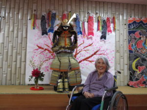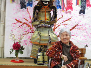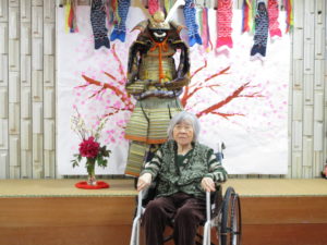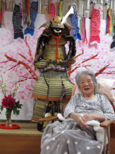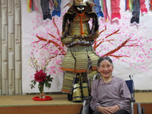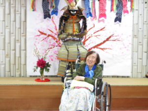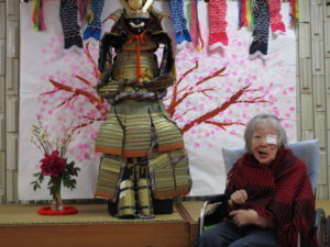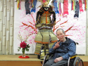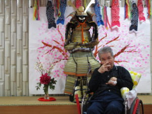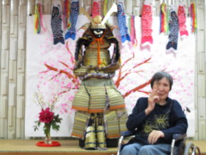 先日男性利用者の方々と一緒に飾りつけを行った五月人形🎏