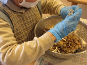 調理実習では、ご利用者が何か一つでも作業に参加出来るように、管理栄養士と厨房職員とが工夫をしています。