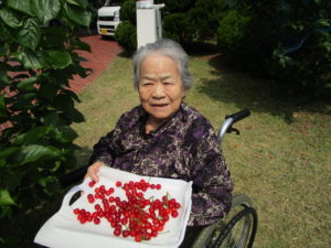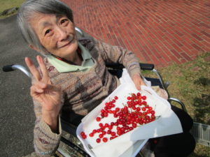 天気も良く くじゃくの家のさくらんぼが収穫の時期になり皆さんと一緒にさくらんぼ🍒摘みを行いました