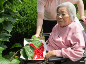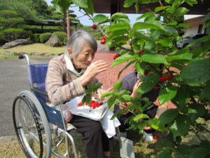 天気も良く くじゃくの家のさくらんぼが収穫の時期になり皆さんと一緒にさくらんぼ🍒摘みを行いました