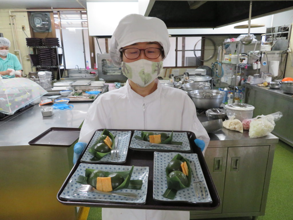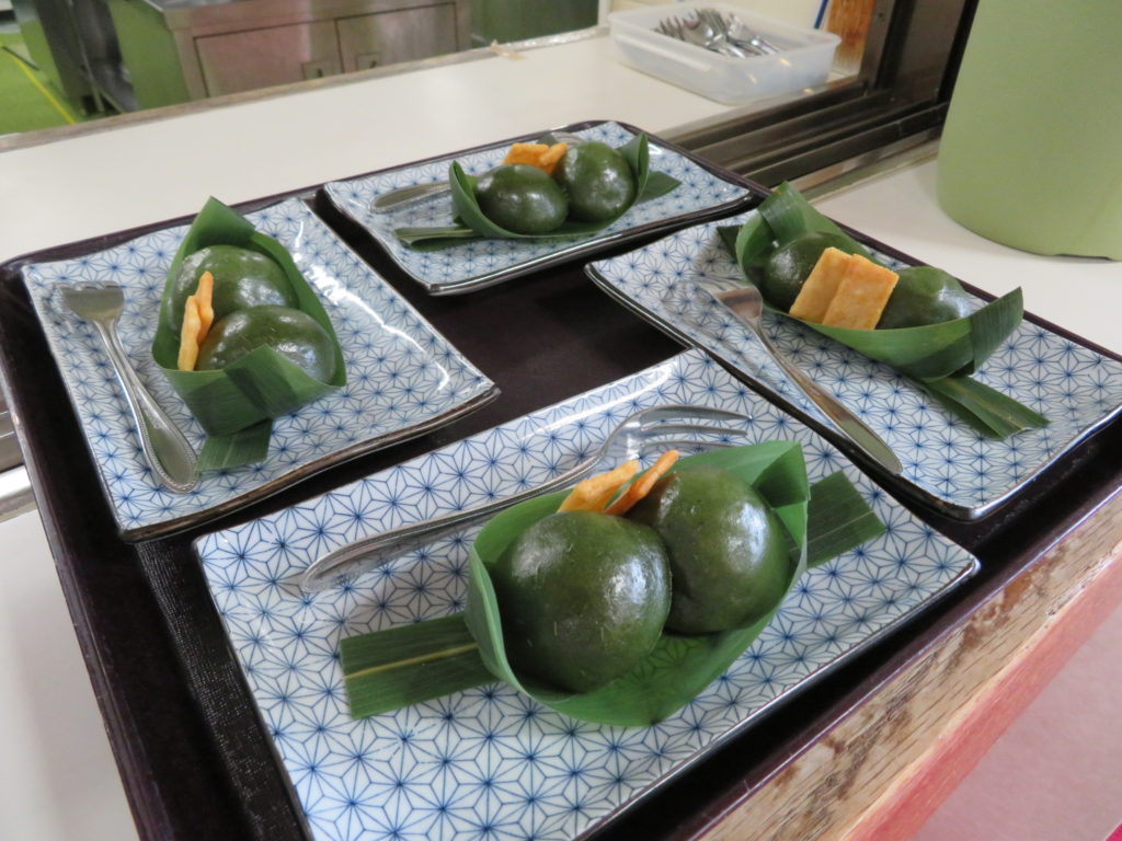 本日のお菓子は、手作り笹団子(胡桃味噌、小豆)です✨
