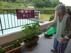 利用者の皆さまには 活動の一つとして 花の水やりをクラブとして楽しんで頂いています
