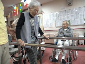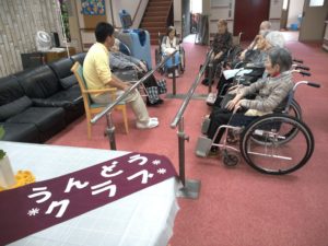 立位運動:『何回しようか?』『うちは10回頑張ったよ~』とワイワイ話をしながら