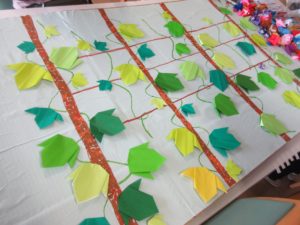 色とりどりのお花と葉っぱの折り紙に、どんな作品になるのかなと職員も楽しみにしておりました。