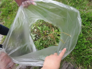 施設の門付近と畑の雑草を、一本一本手作業で抜いています。大変!!