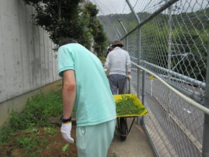 本日は蒸し暑い中、ご利用者は除草作業を頑張っています。