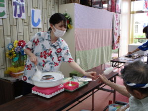 皆さんに 楽しい季節行事 “夏祭り”の雰囲気を感じて頂くことが出来ました😃