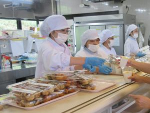 彦山の森、特製「たこ焼き」「チキンナゲット」「フライドポテト」は調理職員が張り切って準備。
