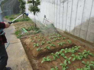 畑の水やりは朝と夕、ご利用者が毎日行っています。
