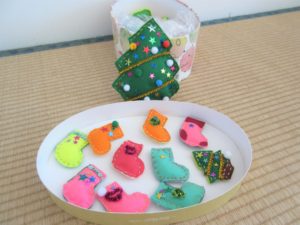 手工芸では、フェルトでクリスマスの飾りを作っています。