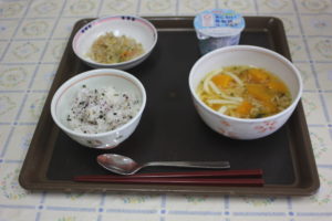 その名も「くじらうどん」うどんの中に鯨肉とカボチャが入っています🐳