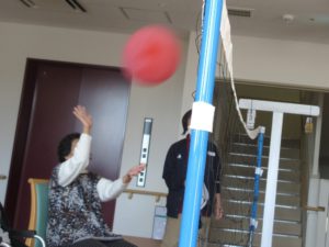 こちらの写真は、先日日中活動で行った「風船バレー」です。