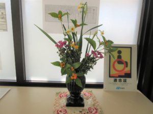 職員のご厚意で、お花の差し入れから活けるところまでして下さいました。