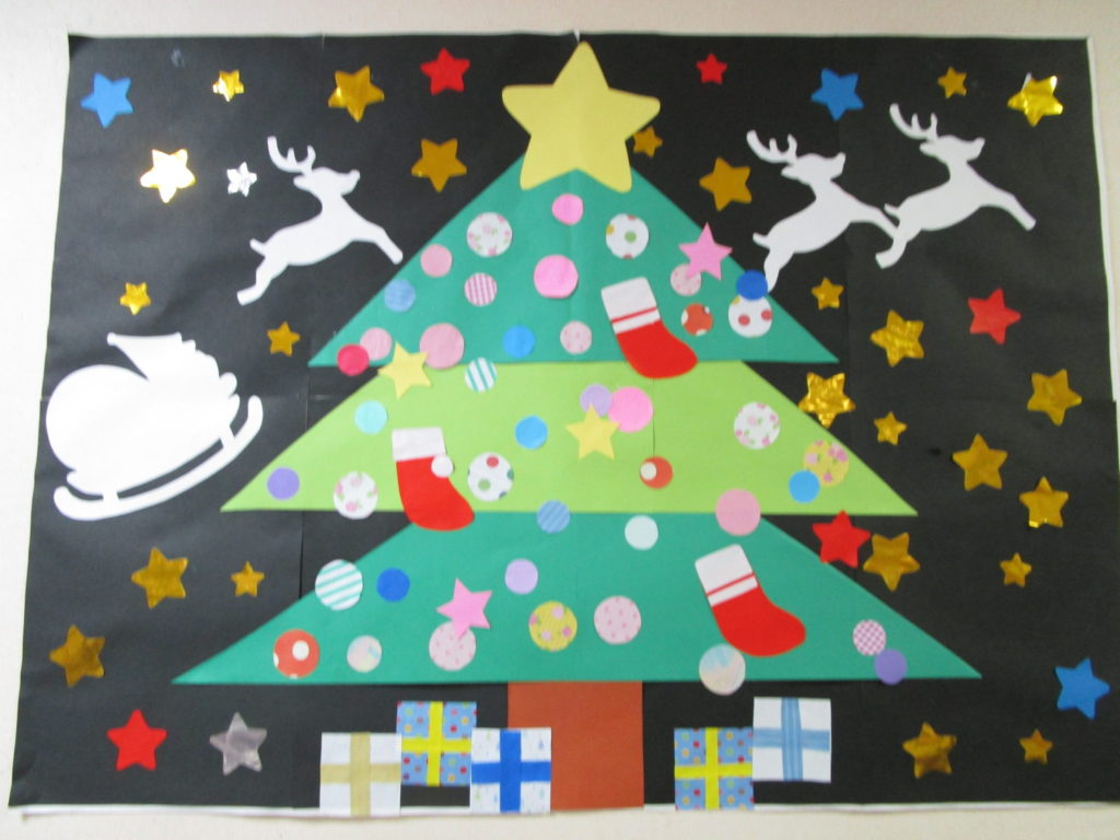 今回の手作り教室では12月に壁に貼る作品を作りました(*^▽^*)
