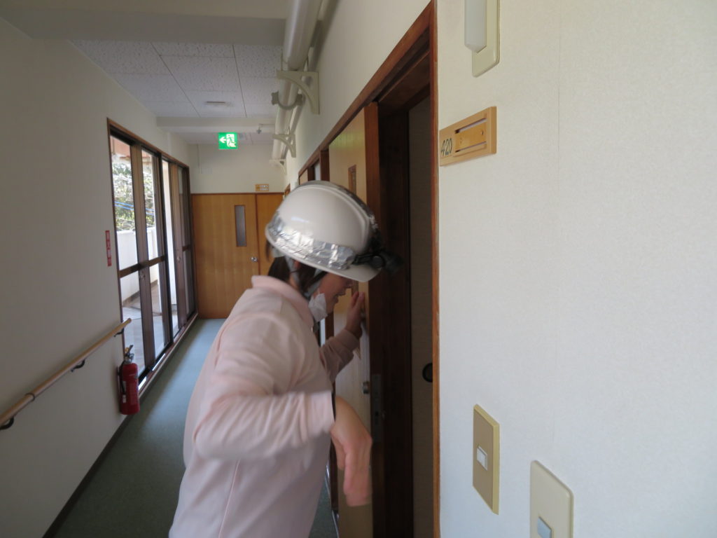 宿直者想定の職員が一部屋、一部屋避難されているか確認しました。