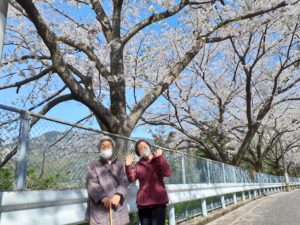 ちょうど風も吹き、桜吹雪みたいで『うわぁ~😲✨』と歓声をあげ、桜に見入ってました(⋈◍>◡<◍)