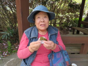 「桜を見ながら、食べる桜餅はおいしいー」と喜んで召し上がられました♪(´▽`)