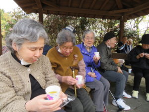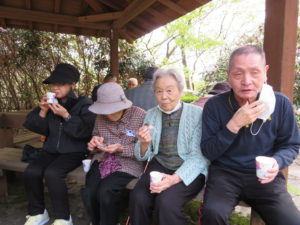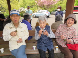 お花を見ながら、おやつの桜餅をいただきました🎵