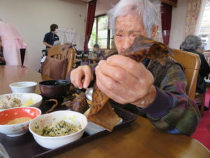 午前中、クッキングで入所者様に作って頂いたちまき(ほんのり塩味)も