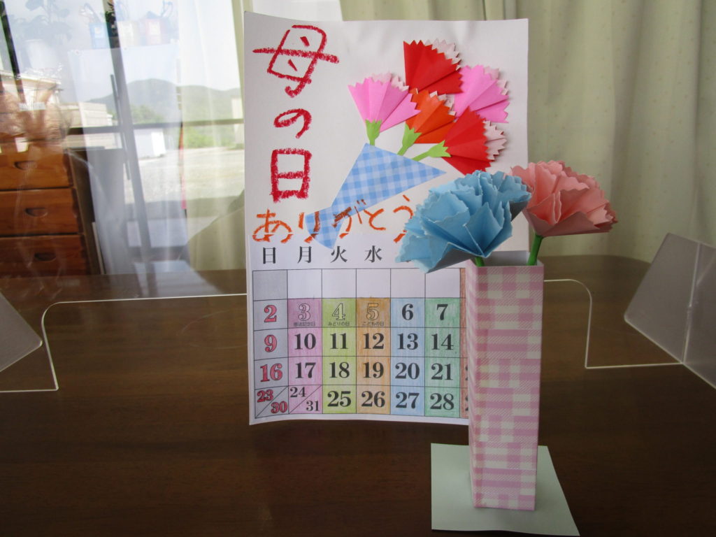 職員が丹精込めて作ったお手製のカーネーションをプレゼントさせてもらいました(^-^)
