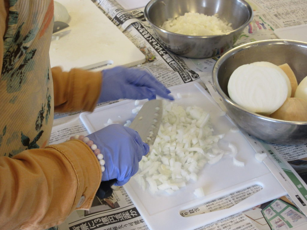涙を流しながらも、玉ねぎを細かく切っていきます👀