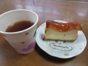 おやつは、調理員さん手作りのチーズケーキと紅茶を用意していただきました🍰