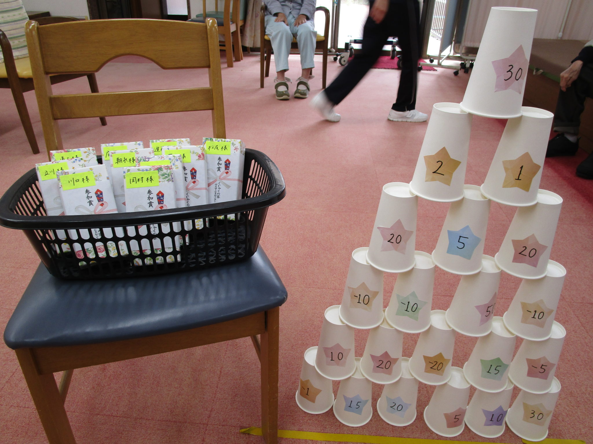 倒れた紙コップの合計点数を競います!