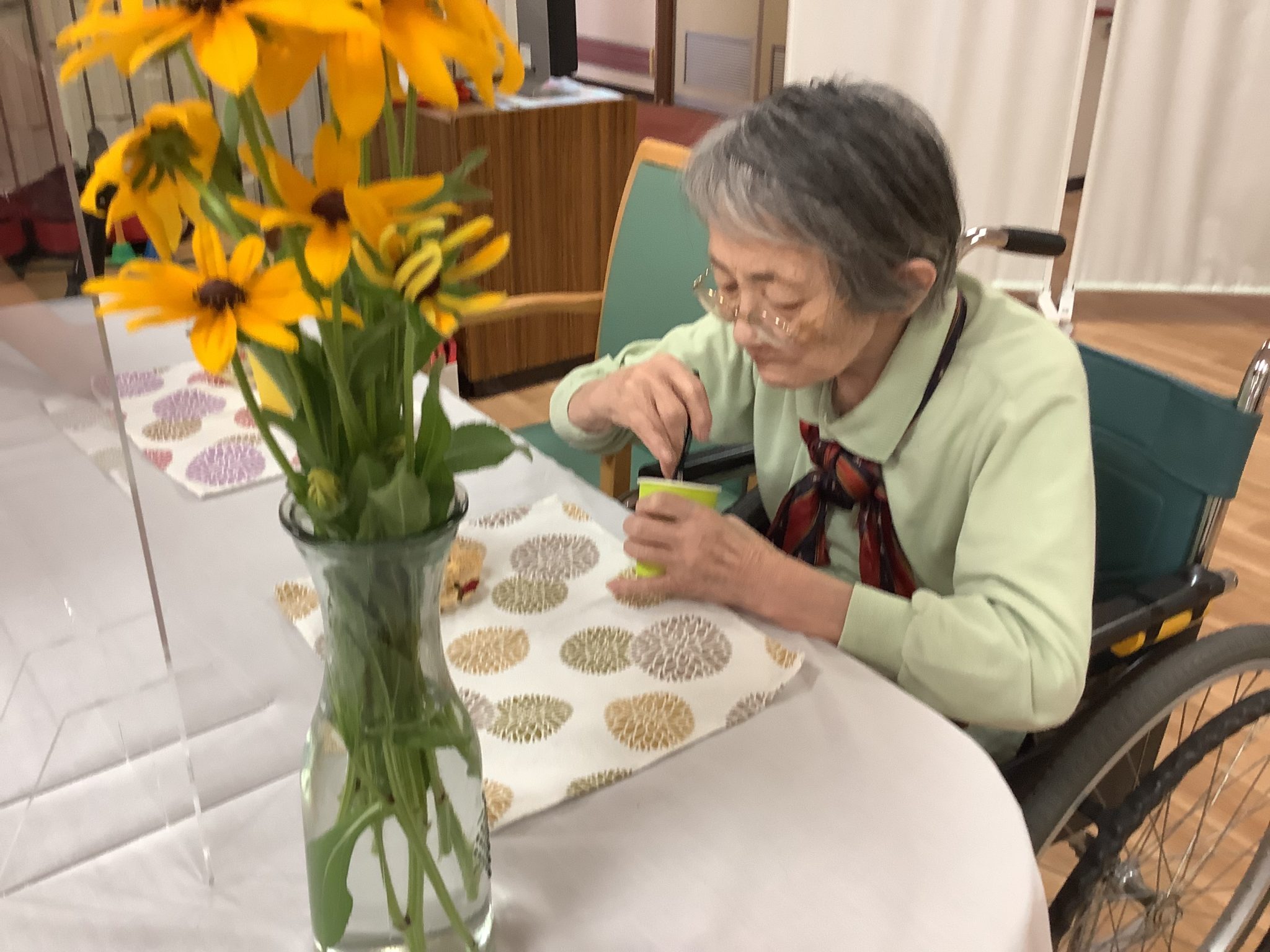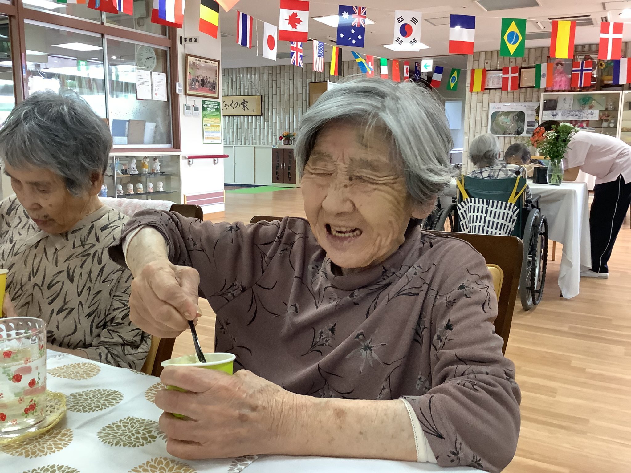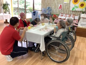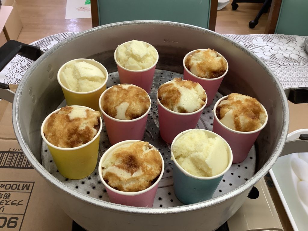今日のおやつは黒糖蒸しパンと利用者様方と作った梅ジュース( *´艸`)
