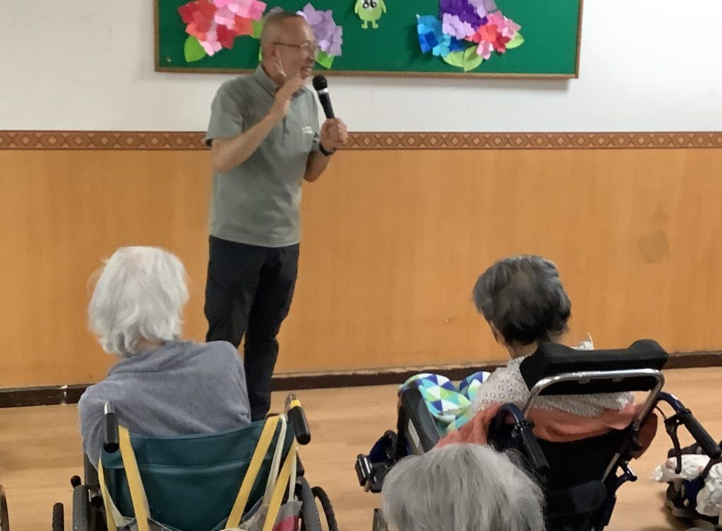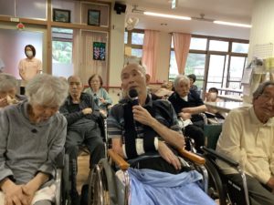 宮﨑氏の面白い話や替え歌メドレー等に利用者様方も終始笑顔がいっぱい