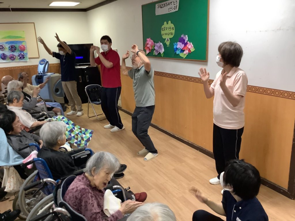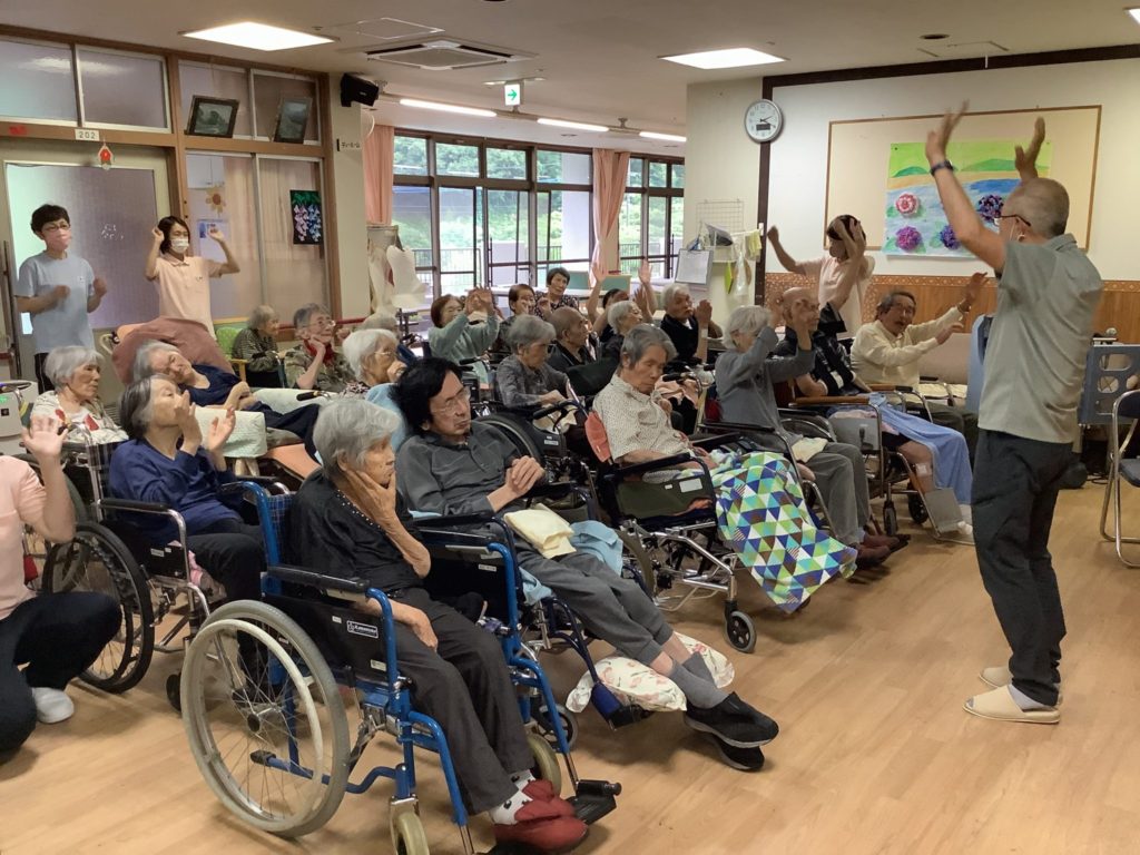 宮﨑氏だけでなく職員も一緒に利用者様と体操をし楽しみました(^^♪