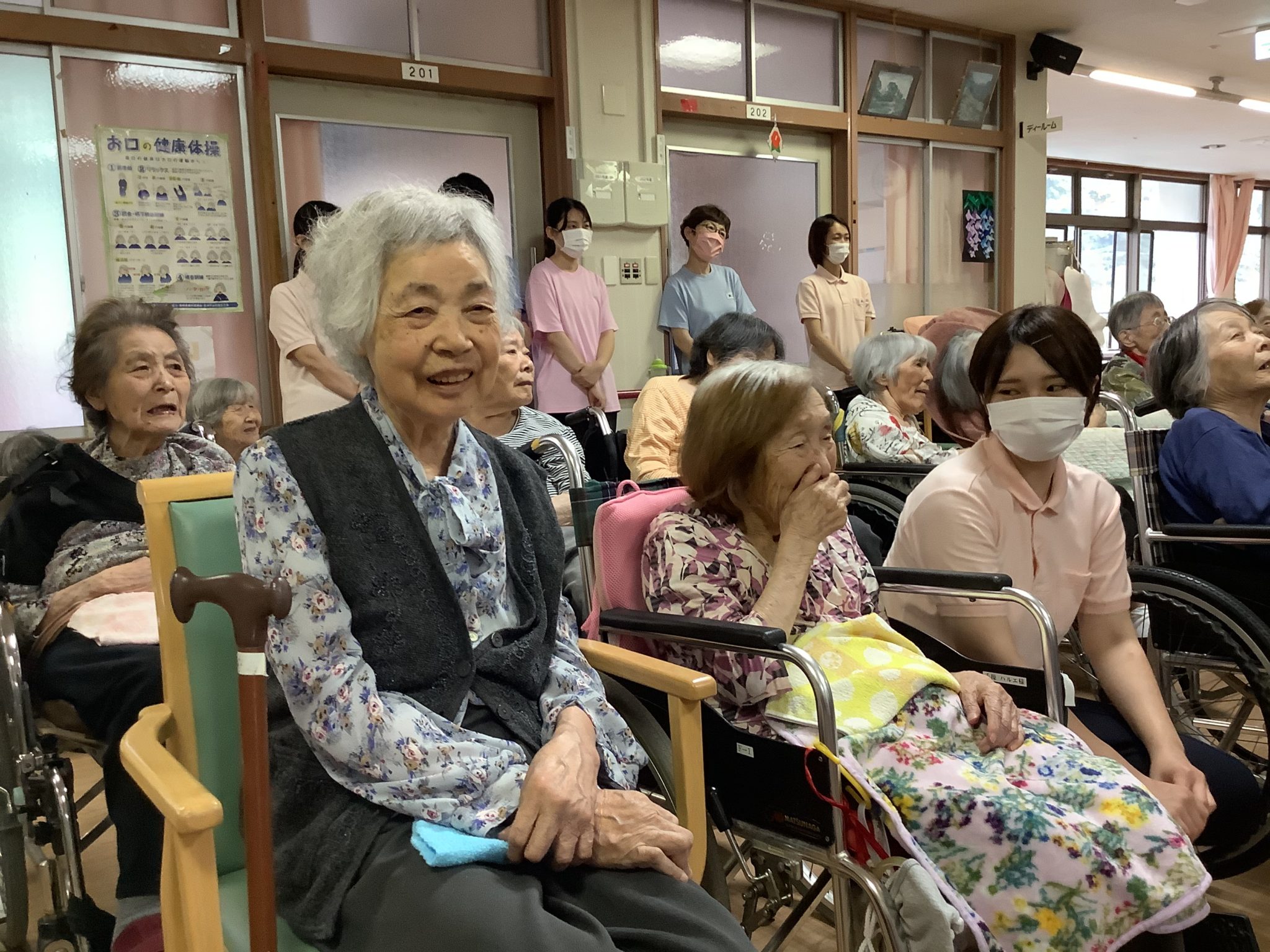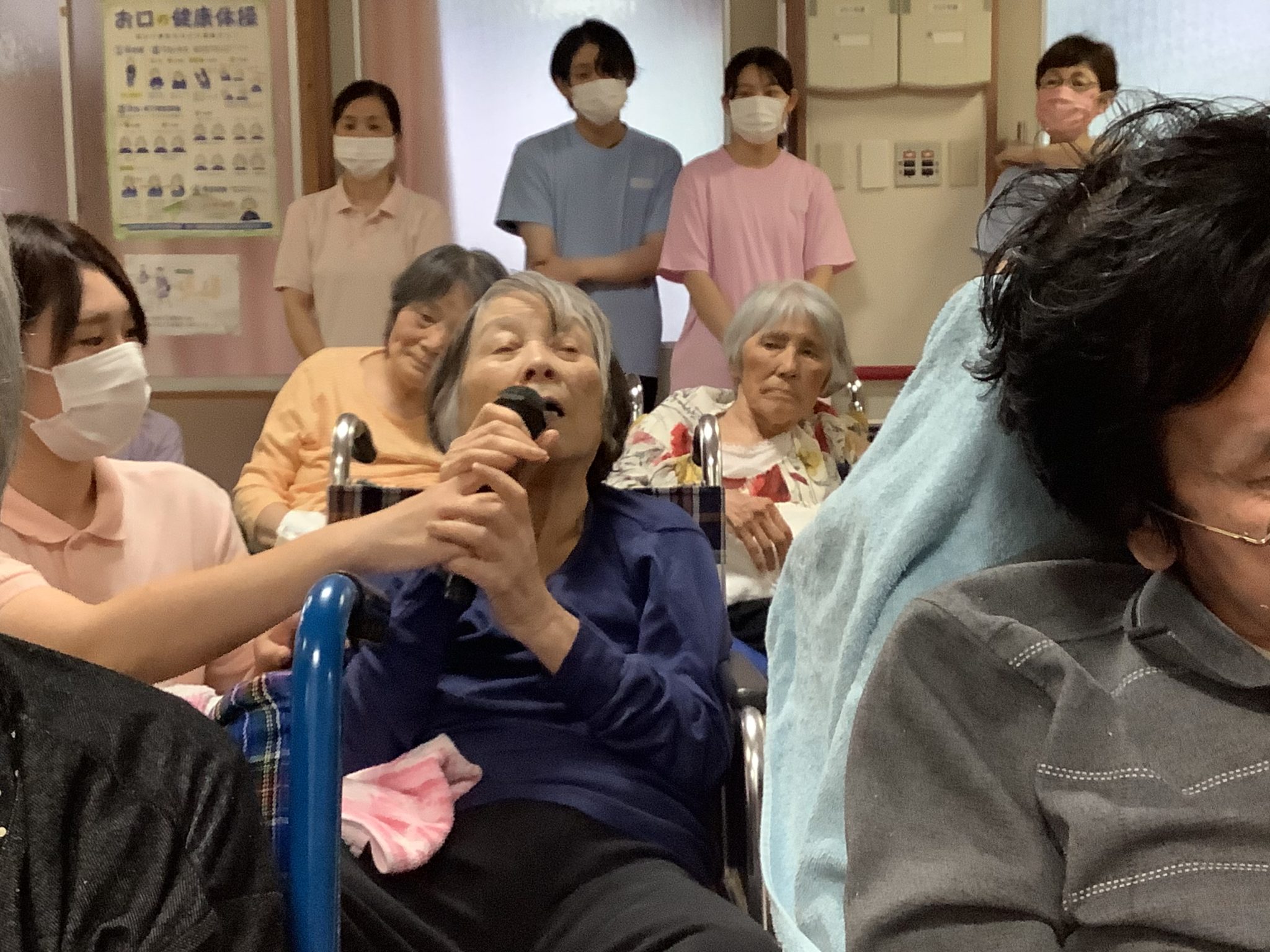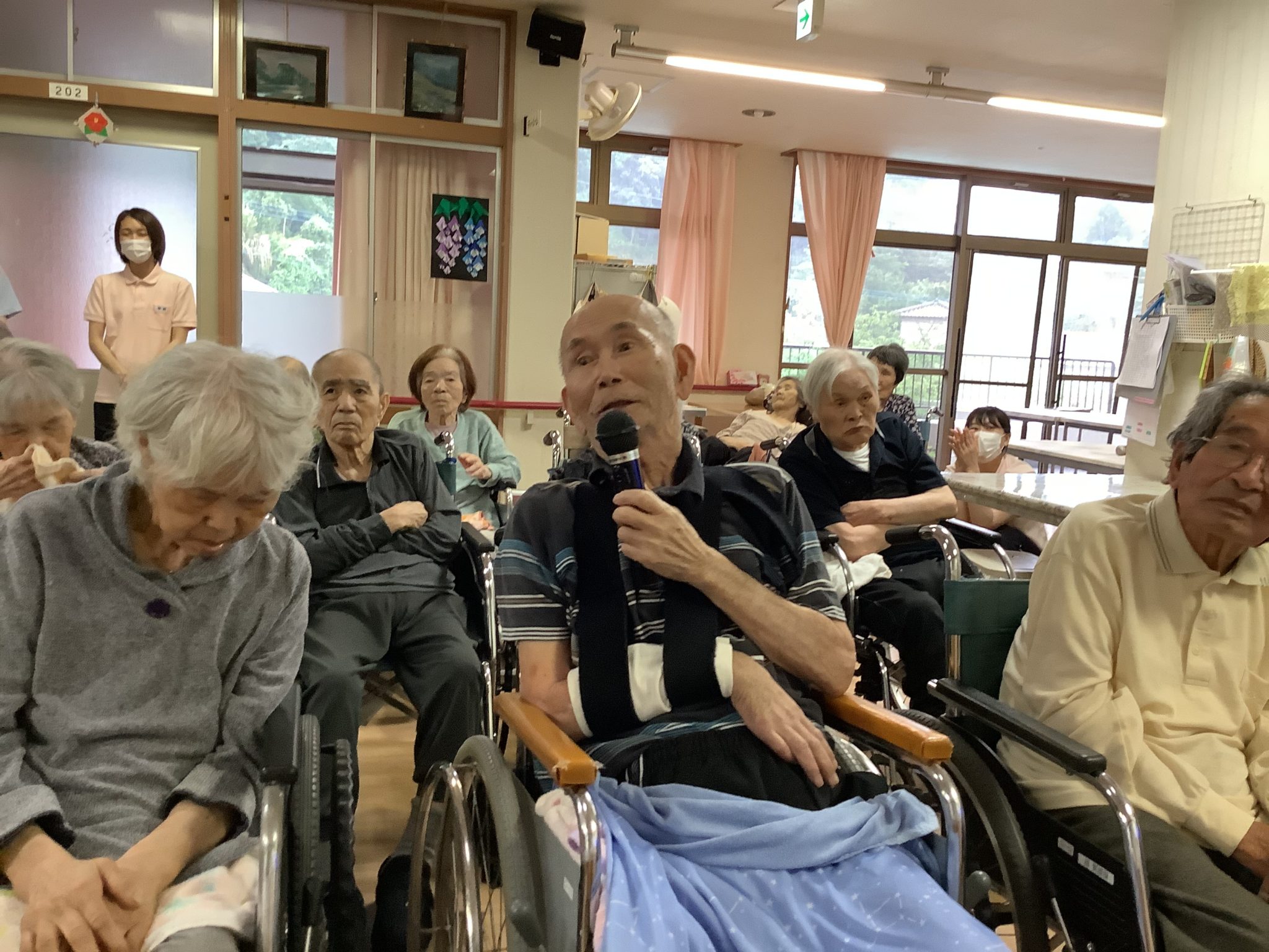 宮﨑氏の面白い話や替え歌メドレー等に利用者様方も終始笑顔がいっぱい