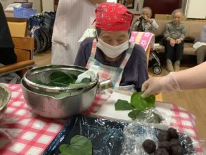 今回のおやつは まんじゅう作り この時期のまんじゅうは“さなぼり万十”と言われています