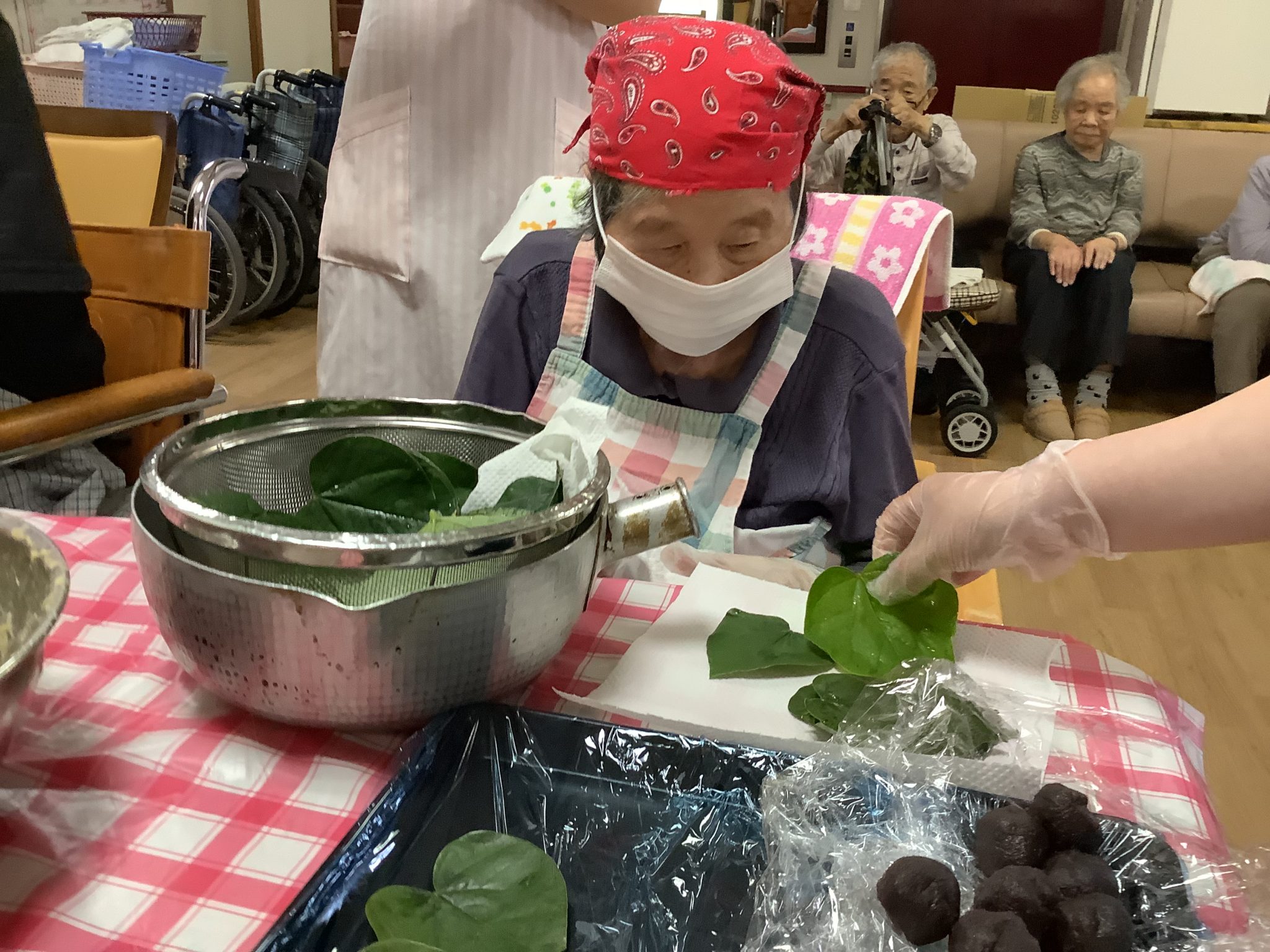「まんじゅうね?」「さなぼり?」「この時期はよう作りよったね」「懐かしかぁ」