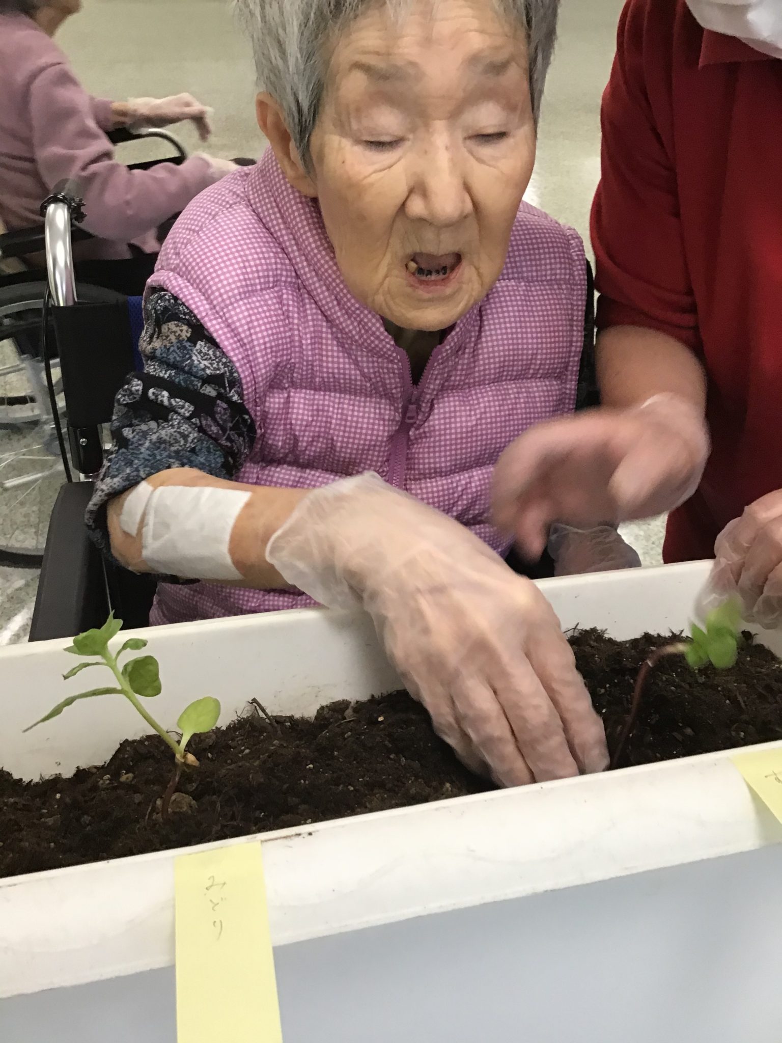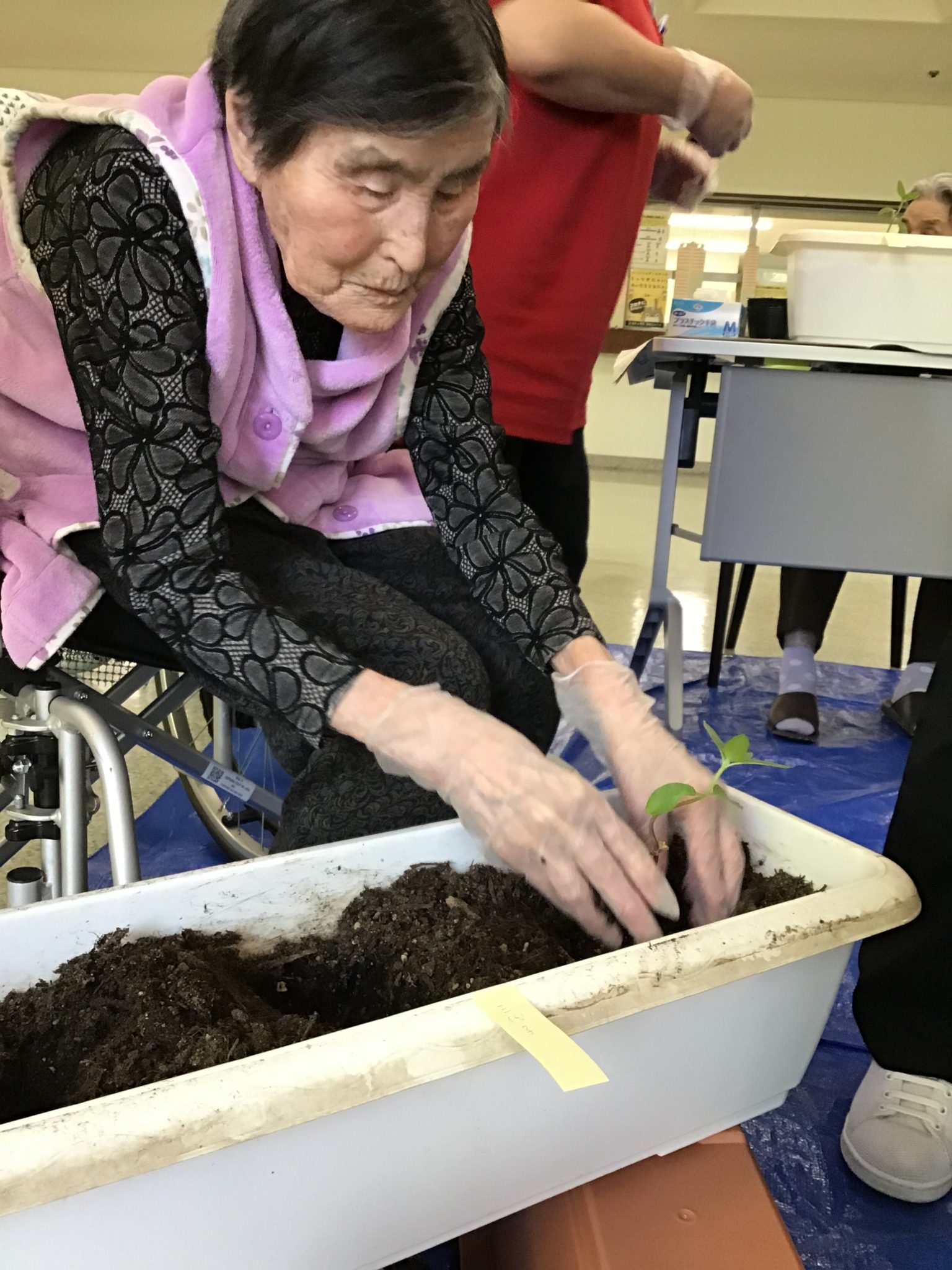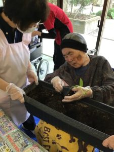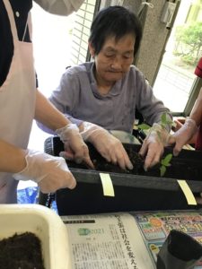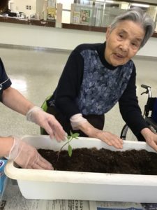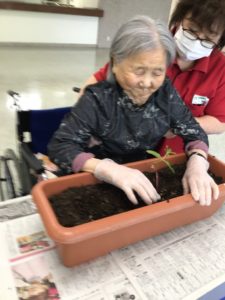 ひまわりの苗を入所者様と一緒に植えました♪