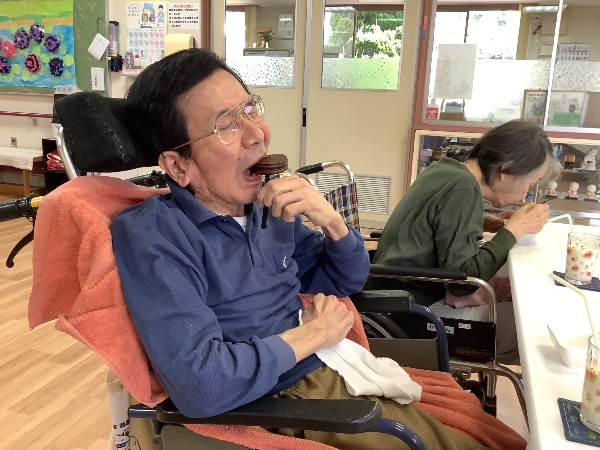 「チョコが甘くて美味しい」とチョコパイをあっという間に完食😆